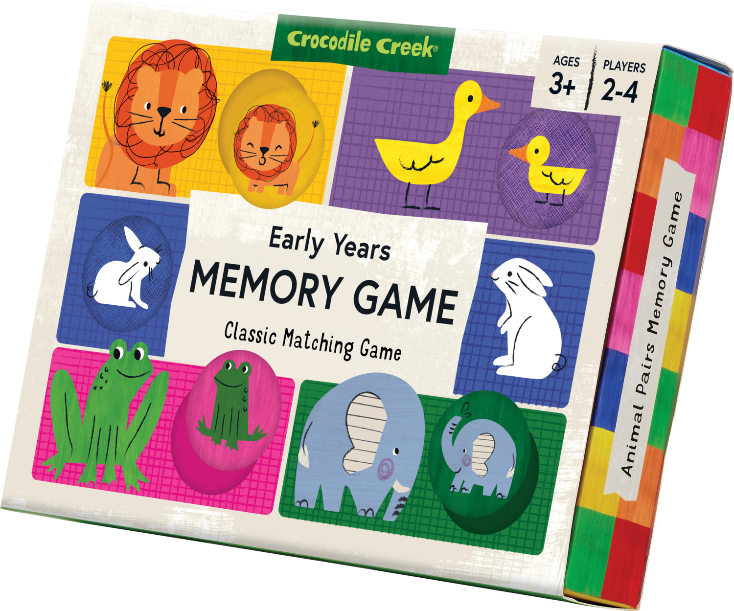 Introduce little ones to the classic game of memory with this charming animal-themed matching game from Crocodile Creek. Featuring adorable parent and baby animal pairs including lions, ducks, rabbits, frogs, and elephants, this engaging game helps develop cognitive skills, visual recognition, and concentration in young children.